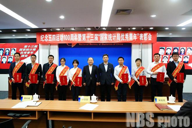 4月28日,国家统计局纪念五四运动100周年暨第十三届“国家统计局优秀青年”表彰会在京举行。国家发展改革委副主任兼国家统计局局长、党组书记宁吉喆出席会议并讲话。中央和国家机关团工委副书记陈利明出席会议并致辞。宁吉喆和陈利明共同为受表彰优秀青年颁奖。国家统计局党组成员、副局长鲜祖德、李晓超、毛有丰、盛来运,总统计师曾玉平出席会议。
